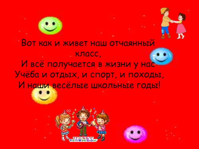 Слайд 18Вот как и живет наш отчаянный класс, И всё получается в жизни