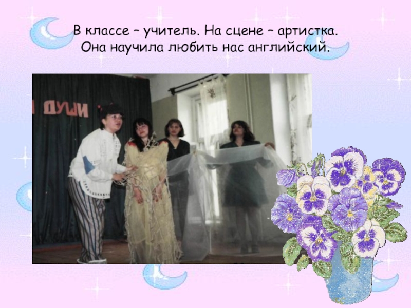 Слайд 5В классе – учитель. На сцене – артистка. Она научила любить