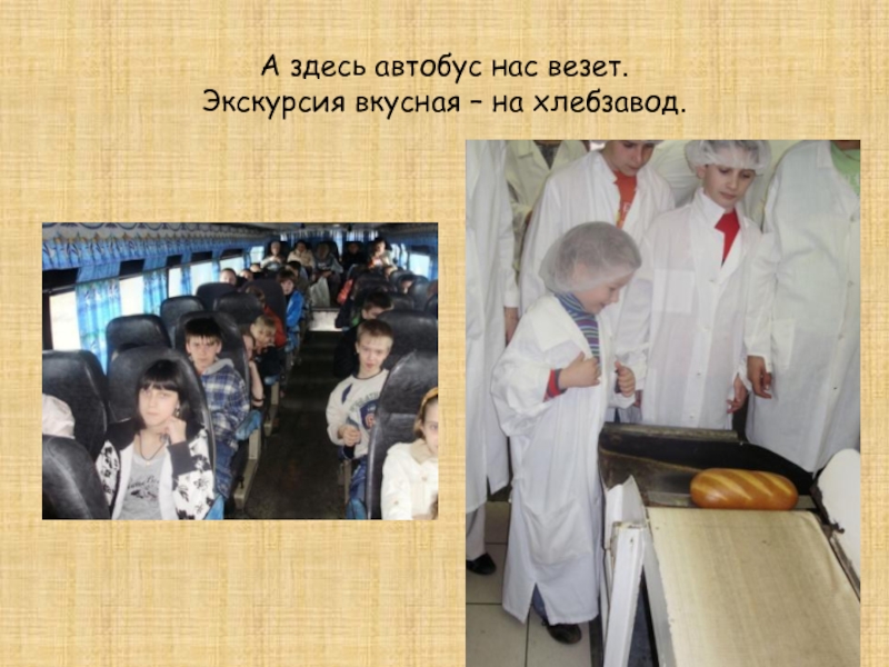 Слайд 10А здесь автобус нас везет. Экскурсия вкусная – на хлебзавод.