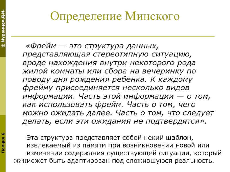 Эта структура представляет собой некий шаблон, извлекаемый из памяти при возникновении новой или изменении содержания существующей ситуации, который может быть адаптирован под сложившуюся реальность.