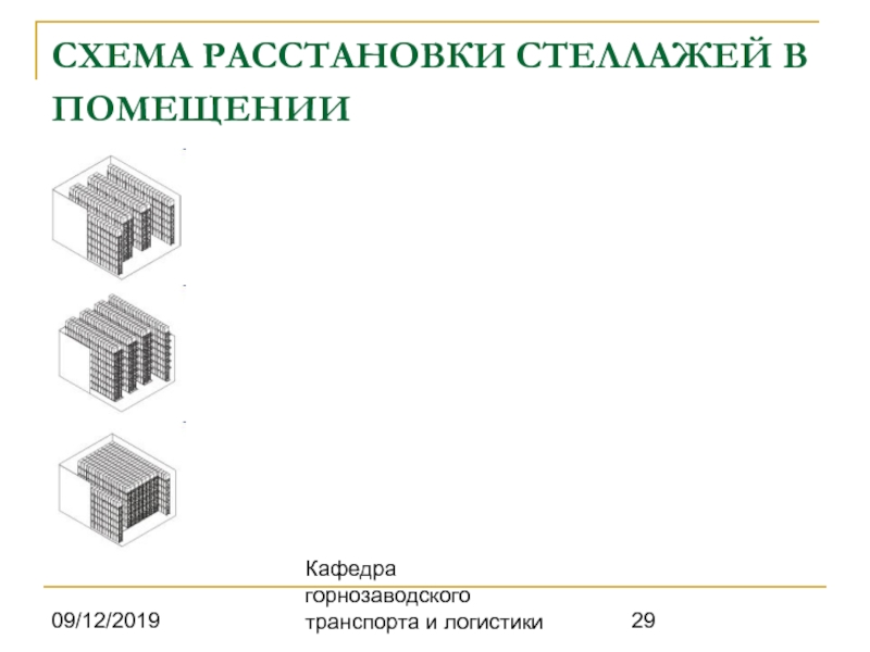 СХЕМА РАССТАНОВКИ СТЕЛЛАЖЕЙ В ПОМЕЩЕНИИ