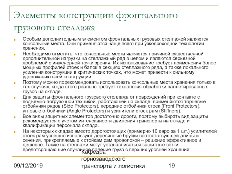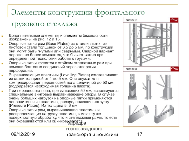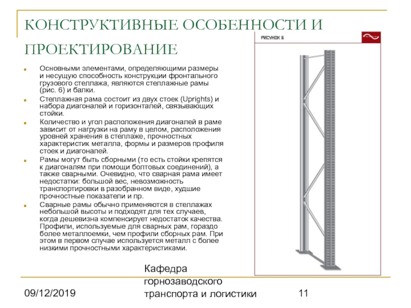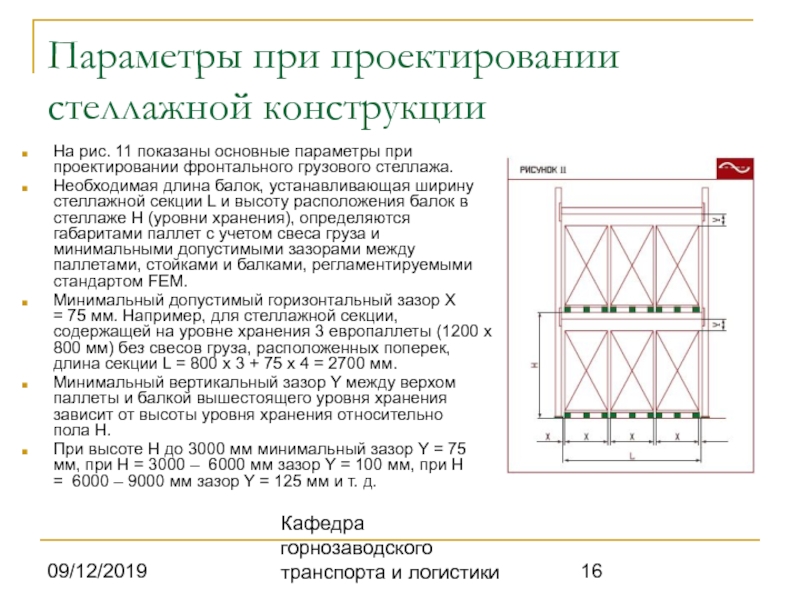 При конструировании фронтальных грузовых стеллажных систем,