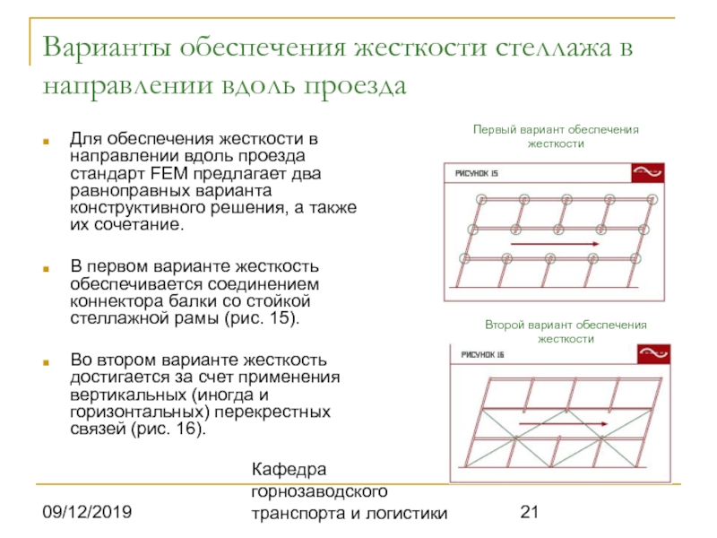Для обеспечения жесткости в направлении вдоль проезда стандарт FEM предлагает два равноправных варианта конструктивного решения, а также их сочетание.