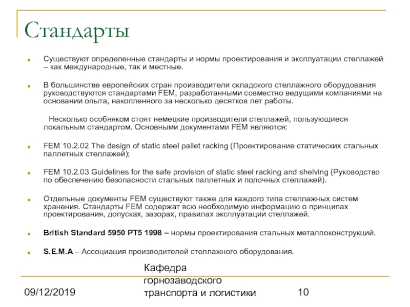 и эксплуатации стеллажей – как международные, так и местные.