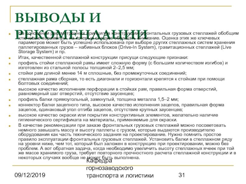 Кафедра горнозаводского транспорта и логистики