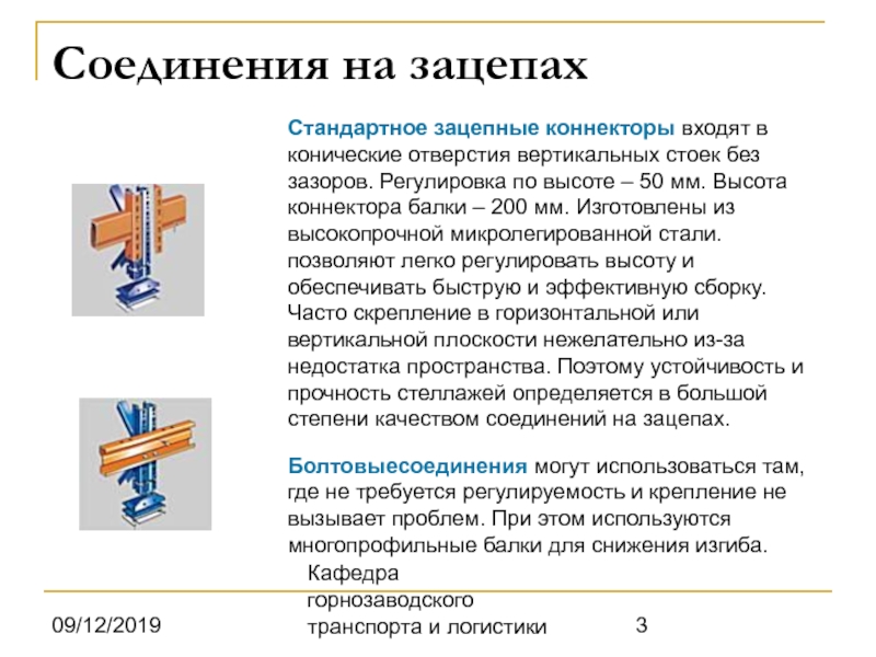 материалов стоек и балок, а также инженерного подбора оптимального сочетания типов коннекторов для набора балок конкретного стеллажного ряда.