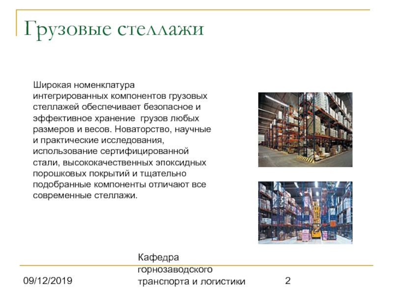 Слайд 1Фронтальные грузовые стеллажи