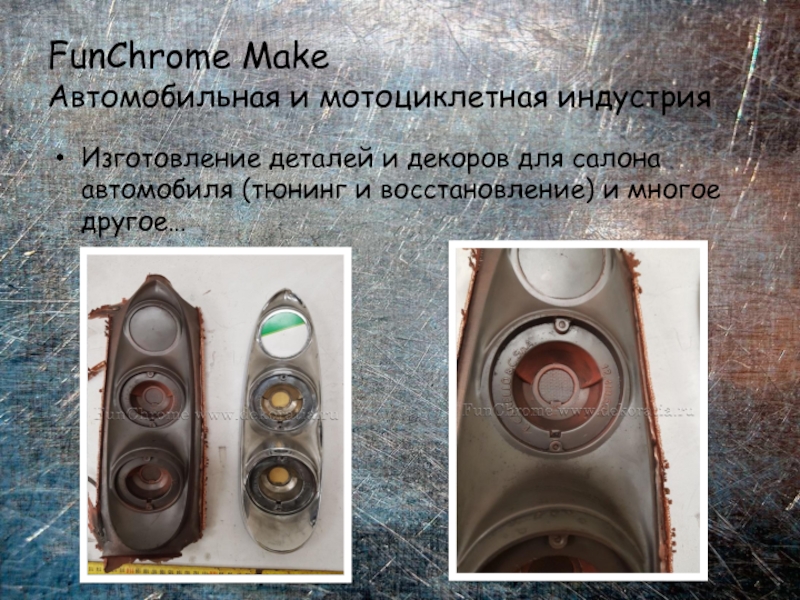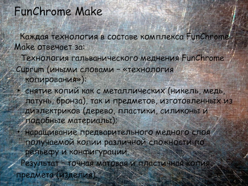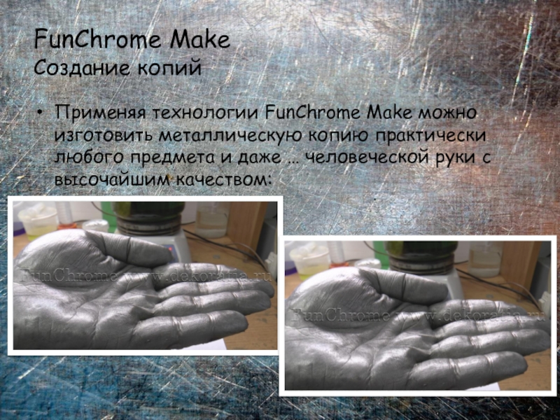 Слайд 12Применяя технологии FunChrome Make можно изготовить металлическую копию практически любого предмета