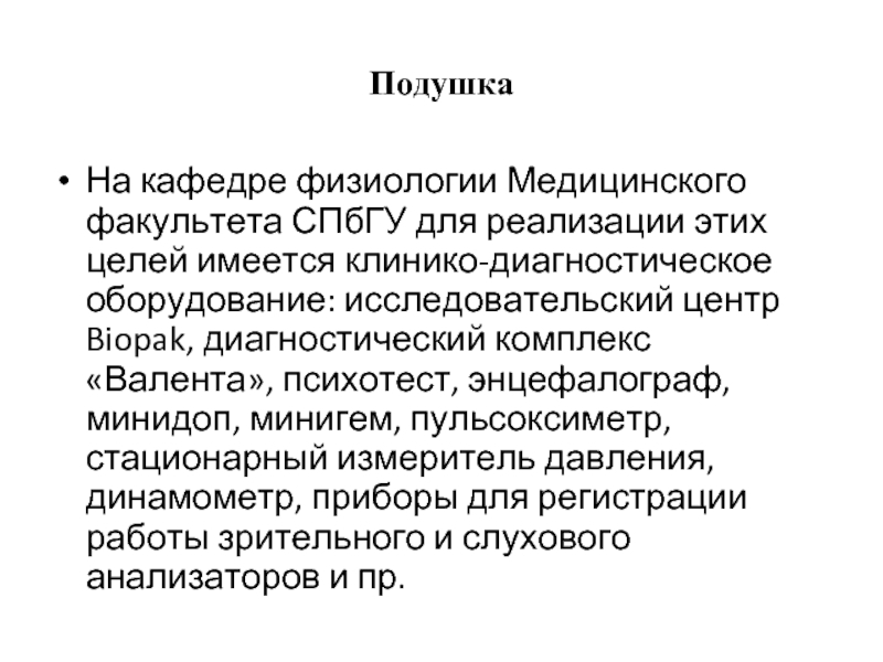На кафедре физиологии Медицинского факультета СПбГУ для реализации этих целей имеется