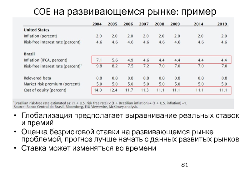 безрисковой ставки на развивающемся рынке проблемой, прогноз лучше начать с данных развитых рынков