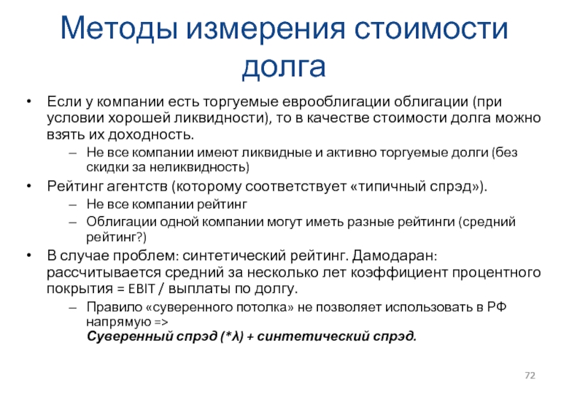 используется среднеотраслевое соотношение долга к стоимости. Идея – компании стремятся к оптимуму