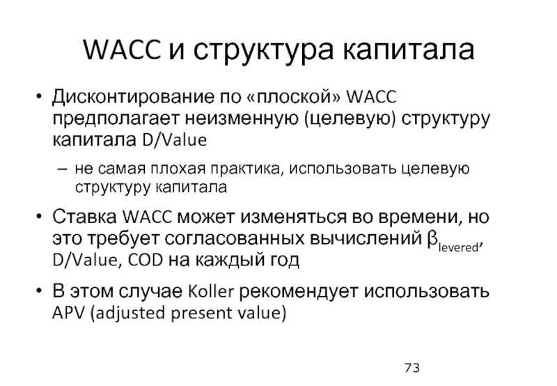 Дисконтирование по «плоской» WACC предполагает неизменную (целевую) структуру
