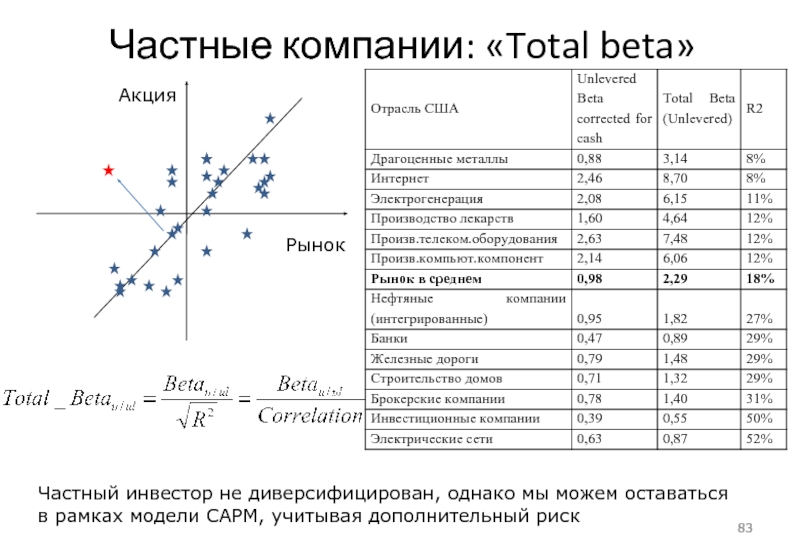 Риск частной компании выше, чем публичной. Владелец частной компании не диверсифицирован.