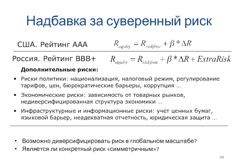 масштабе – существует единая премия за акционерный риск и «мировая» β