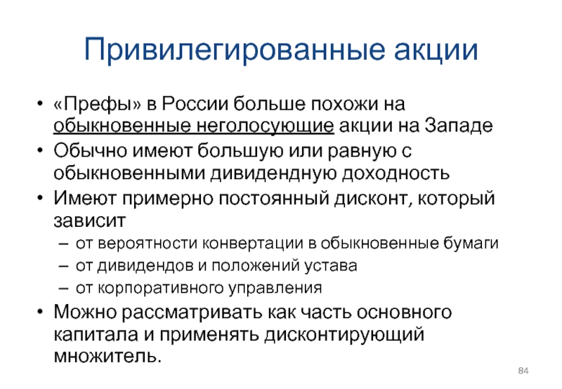 Обычно имеют большую или равную с обыкновенными дивидендную доходность