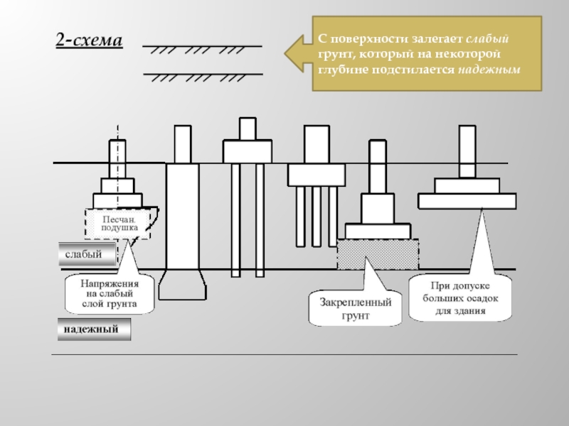 8) учет слабого подстилающего слоя грунта: