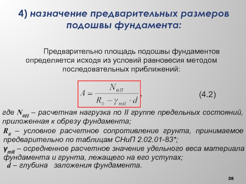 R0 – условное расчетное сопротивление грунта, принимаемое предварительно по таблицам СНиП 2.02.01-83*;