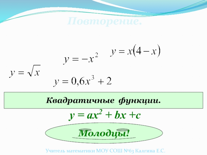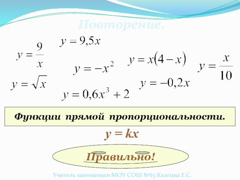 Учитель математики МОУ СОШ №63 Калгина Е.С.