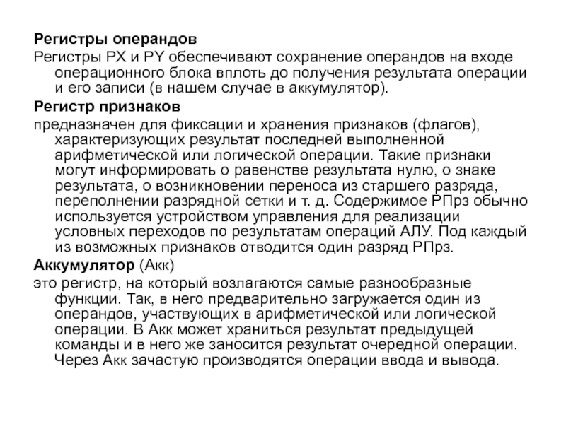Регистры РХ и PY обеспечивают сохранение операндов на входе операционного