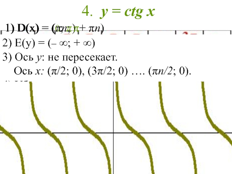 Ось x: (0; 0), (π; 0), (2π; 0) …. (πּn; 0).