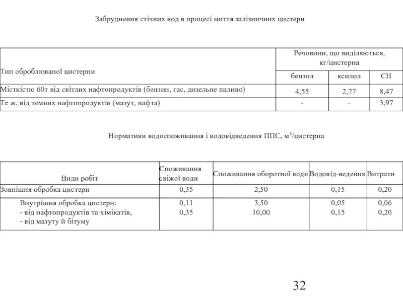 Слайд 32Забруднення стічних вод в процесі миття залізничних цистерн
