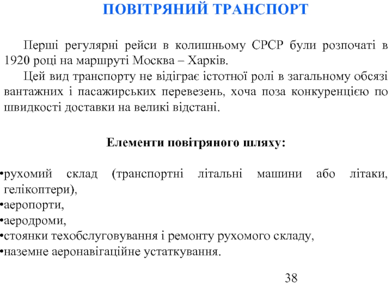 Слайд 38ПОВІТРЯНИЙ ТРАНСПОРТ