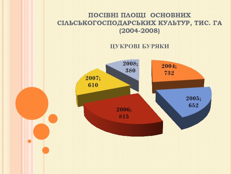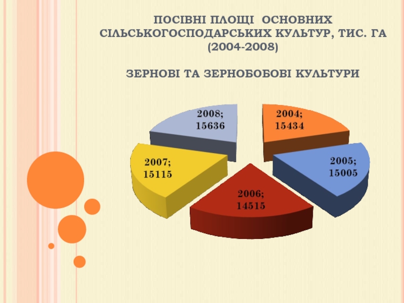 Слайд 15ПОСІВНІ ПЛОЩІ ОСНОВНИХ СІЛЬСЬКОГОСПОДАРСЬКИХ КУЛЬТУР, ТИС. ГА (2004-2008)