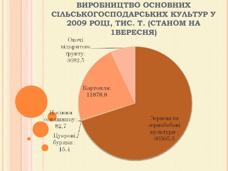 Слайд 21ВИРОБНИЦТВО ОСНОВНИХ СІЛЬСЬКОГОСПОДАРСЬКИХ КУЛЬТУР У 2009 РОЦІ, ТИС. Т. (СТАНОМ НА