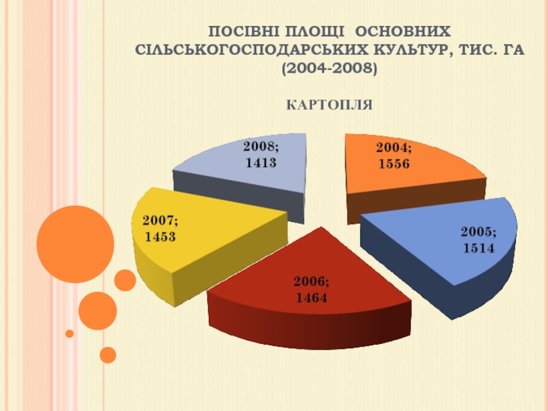 Слайд 13ПОСІВНІ ПЛОЩІ ОСНОВНИХ СІЛЬСЬКОГОСПОДАРСЬКИХ КУЛЬТУР, ТИС. ГА (2004-2008)