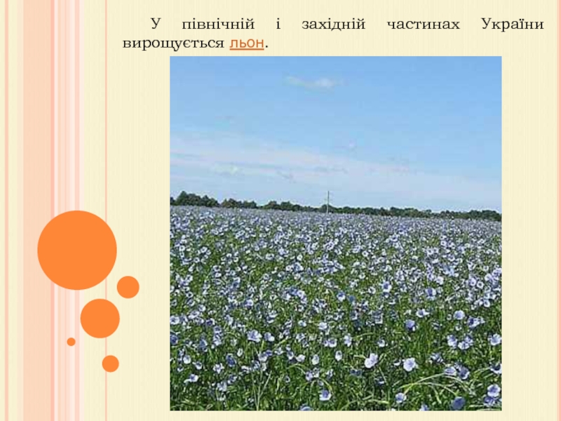 Слайд 9 У північній і західній частинах України вирощується льон.