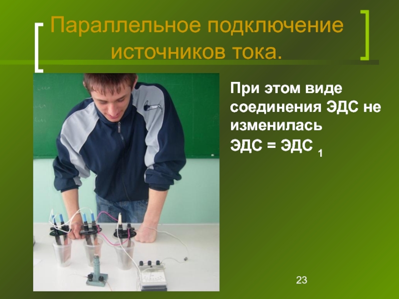 Слайд 23Параллельное подключение источников тока.