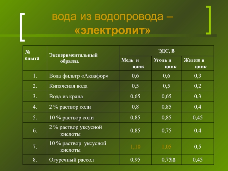 Слайд 18вода из водопровода – «электролит»