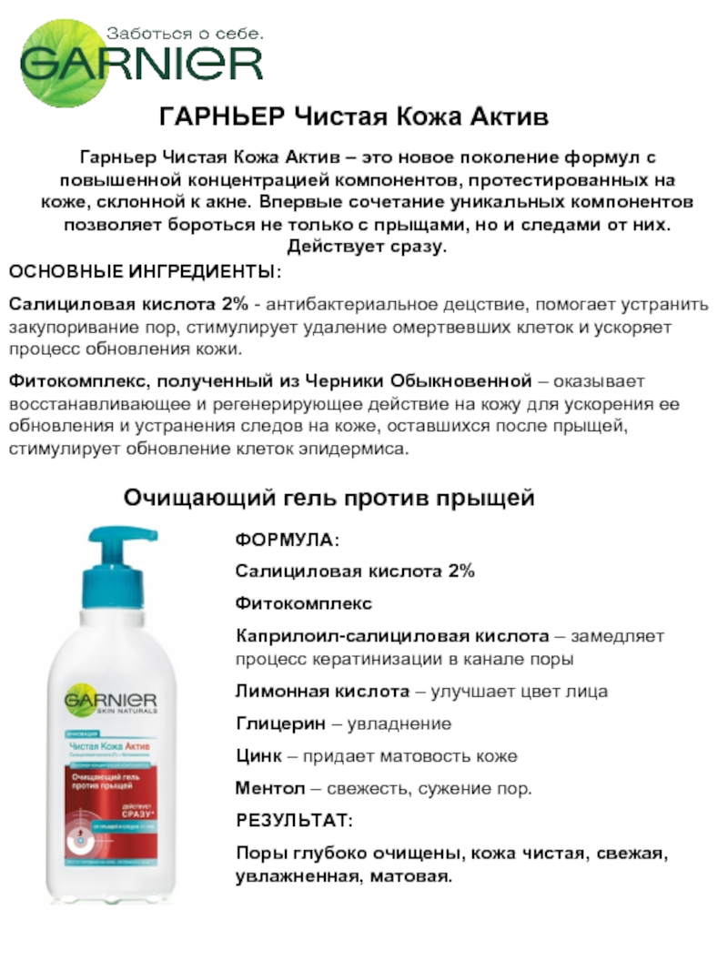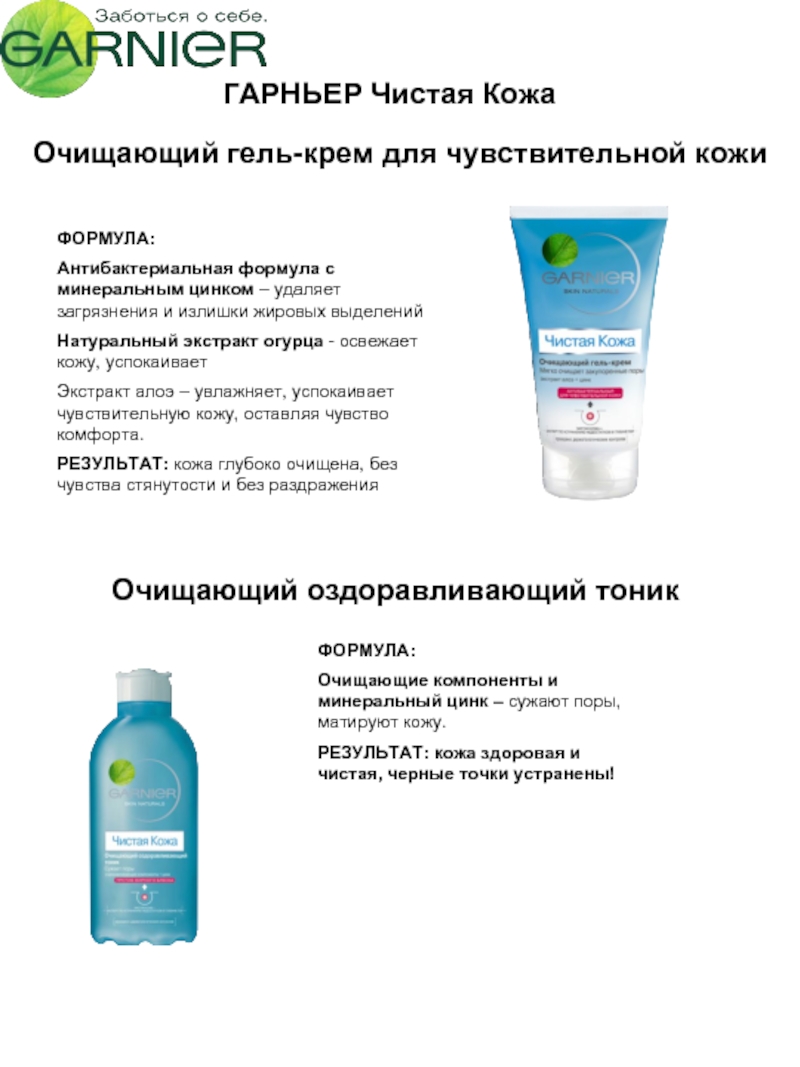 Цинк – регулирует секрецию сальных желез, матирует (основной компонент геля для умывания)