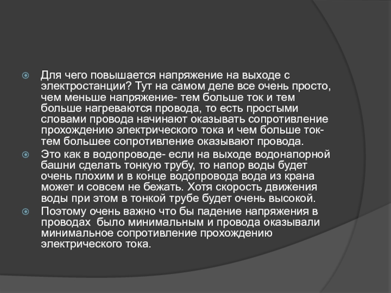 Для чего повышается напряжение на выходе с электростанции? Тут на самом