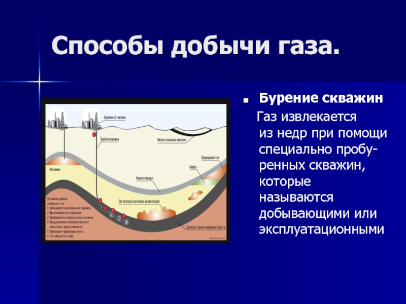 Газ извлекается из недр при помощи специально пробу-ренных скважин,