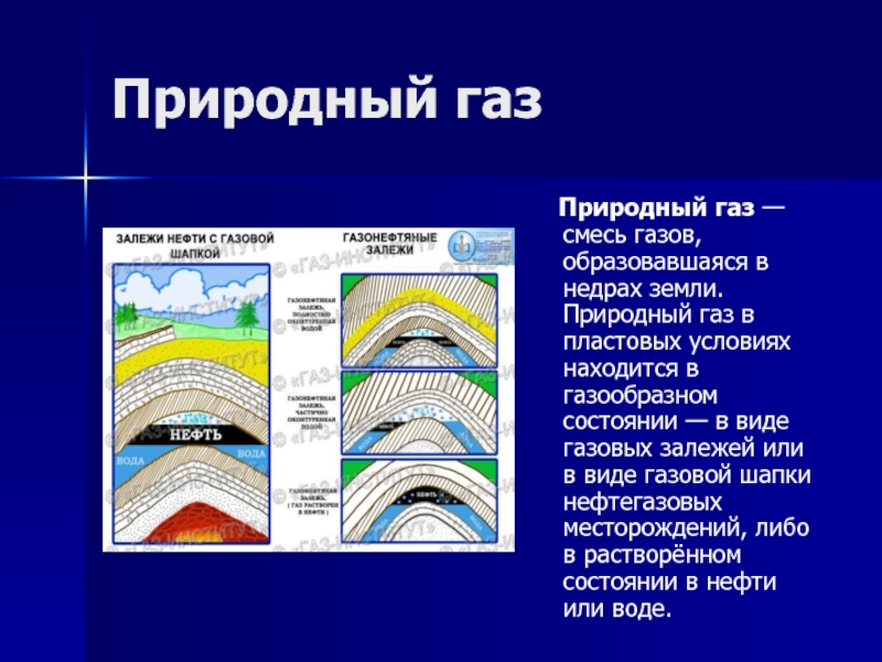 Природный газ — смесь газов, образовавшаяся в недрах земли.