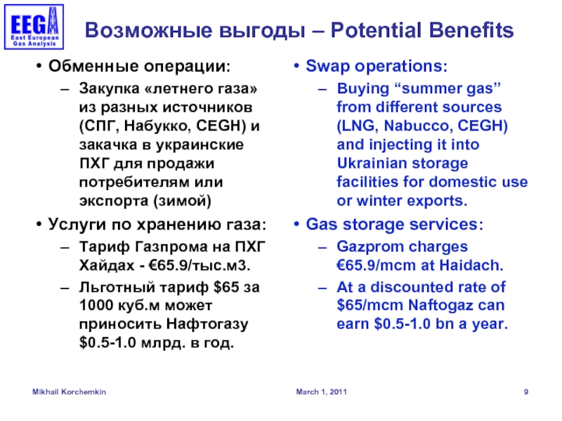 Buying “summer gas” from different sources (LNG, Nabucco, CEGH) and injecting it into Ukrainian storage facilities for domestic use or winter exports.
