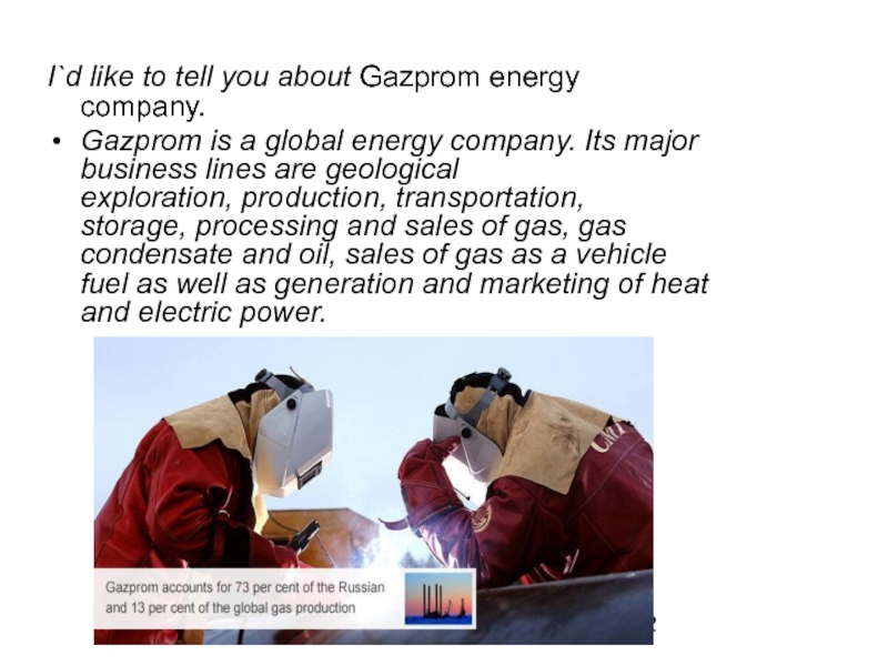 Слайд 2I`d like to tell you about Gazprom energy company.