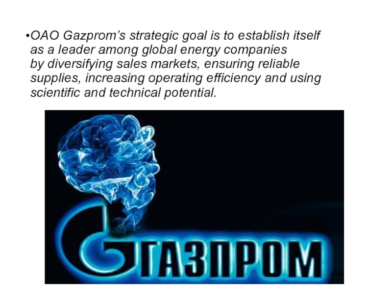 Слайд 7OAO Gazprom’s strategic goal is to establish itself as a leader among global energy companies by diversifying