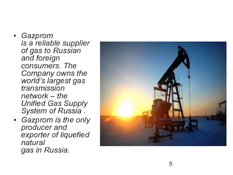 Gazprom is a reliable supplier of gas to Russian and foreign consumers. The Company owns