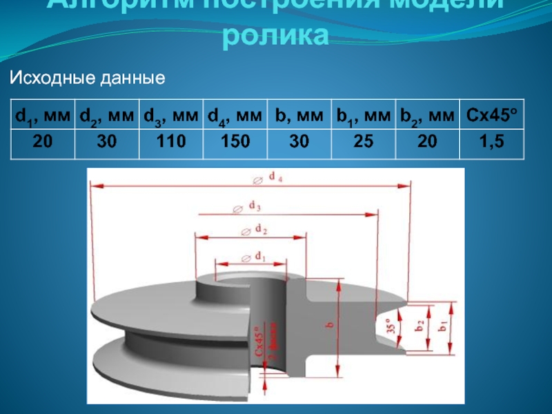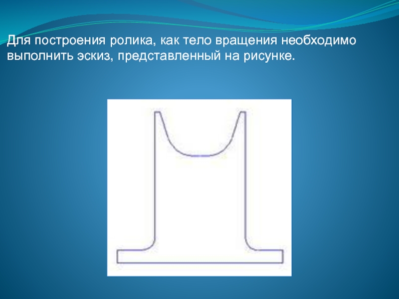 Слайд 5Для построения ролика, как тело вращения необходимо выполнить эскиз, представленный на