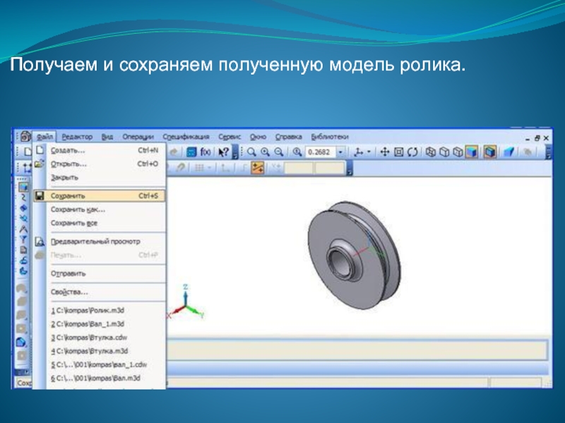Слайд 14Получаем и сохраняем полученную модель ролика.