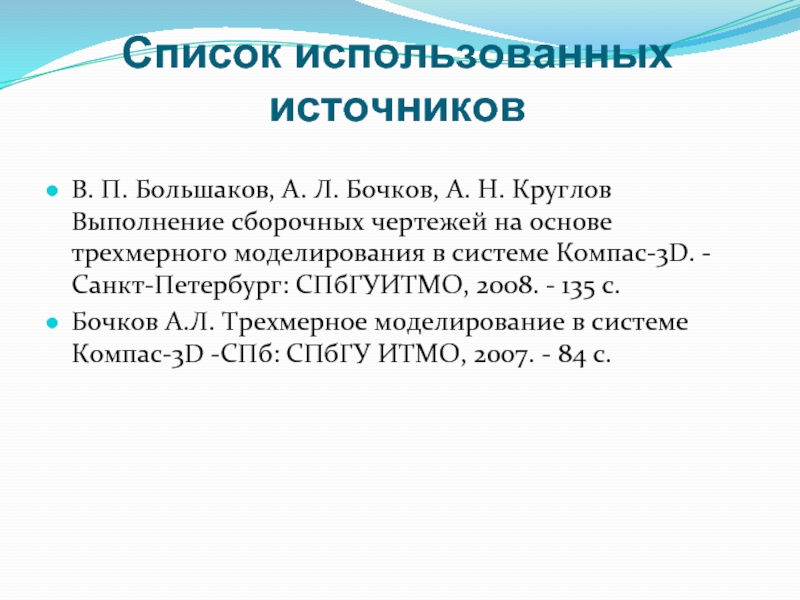 Бочков А.Л. Трехмерное моделирование в системе Компас-3D -СПб: СПбГУ ИТМО, 2007. - 84 c.