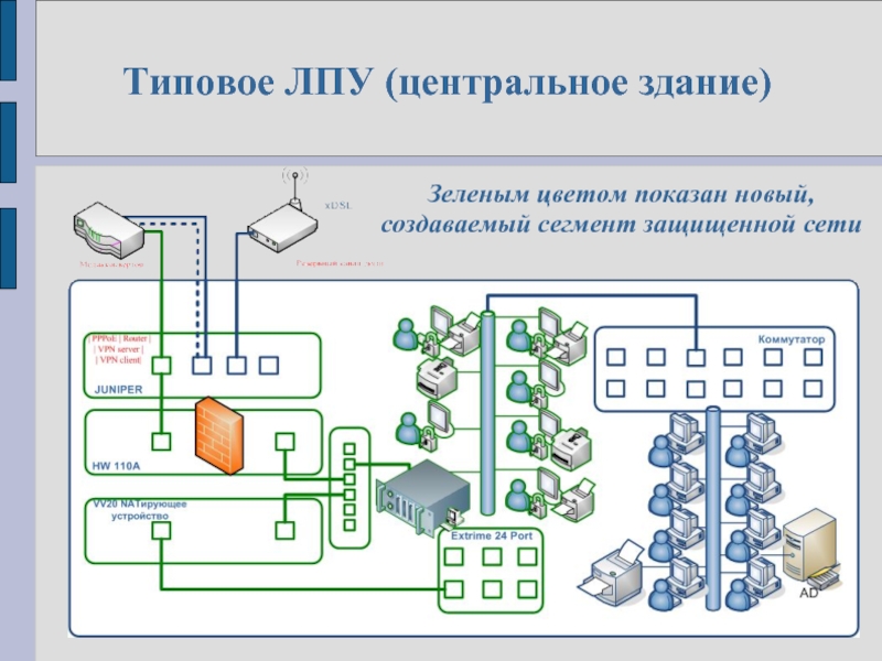 Зеленым цветом показан новый, создаваемый сегмент защищенной сети