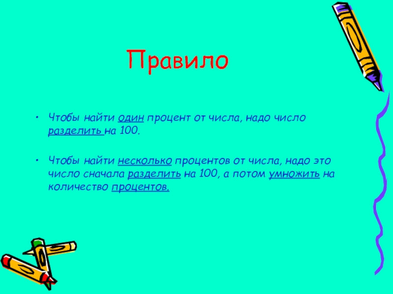 найти несколько процентов от числа, надо это число сначала разделить на 100, а потом умножить на количество процентов.