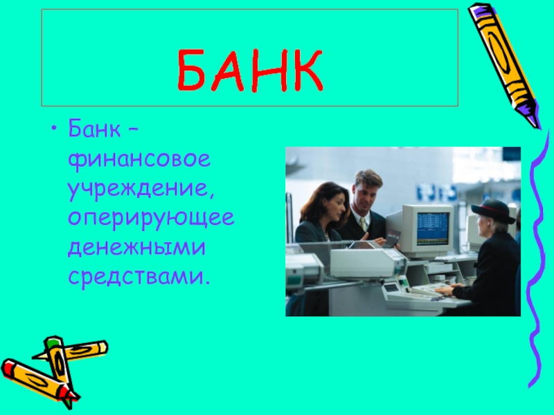 Банк – финансовое учреждение, оперирующее денежными средствами.