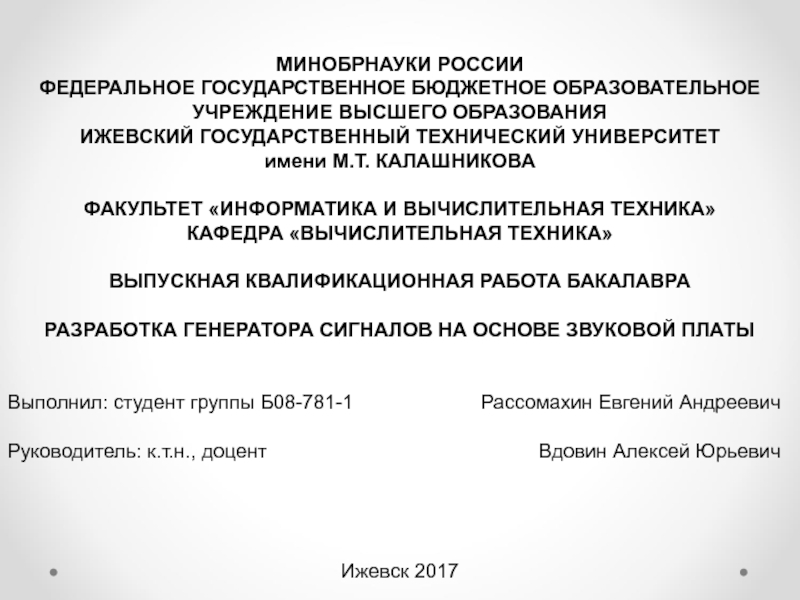 ИЖЕВСКИЙ ГОСУДАРСТВЕННЫЙ ТЕХНИЧЕСКИЙ УНИВЕРСИТЕТ
