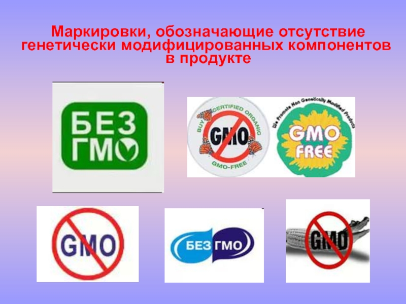 Маркировки, обозначающие отсутствие генетически модифицированных компонентов