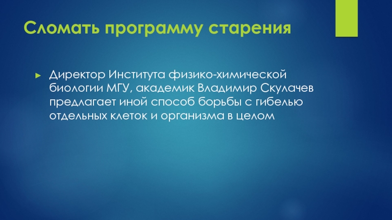 Директор Института физико-химической биологии МГУ, академик Владимир Скулачев предлагает
