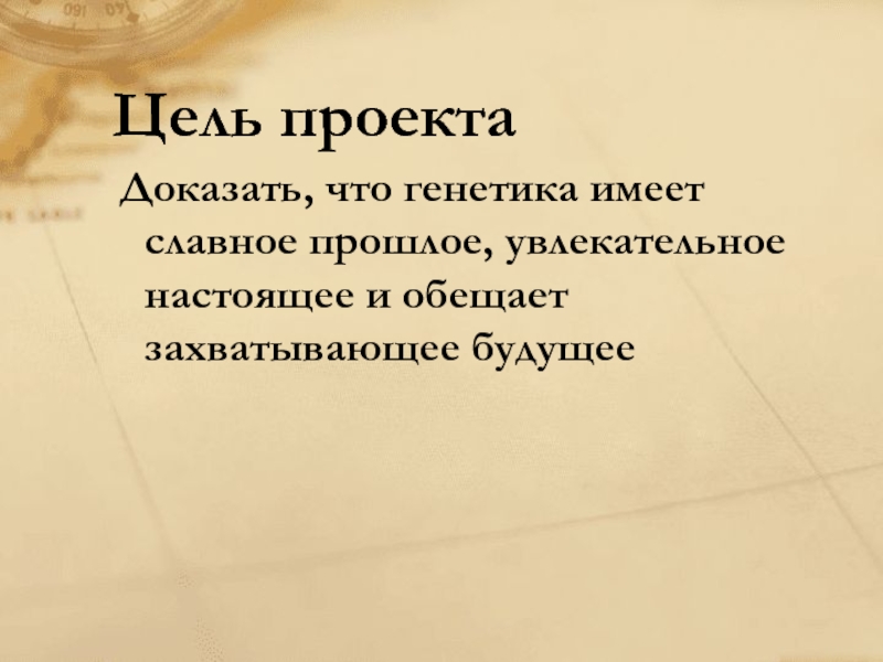 Слайд 2 Доказать, что генетика имеет славное прошлое, увлекательное настоящее и обещает